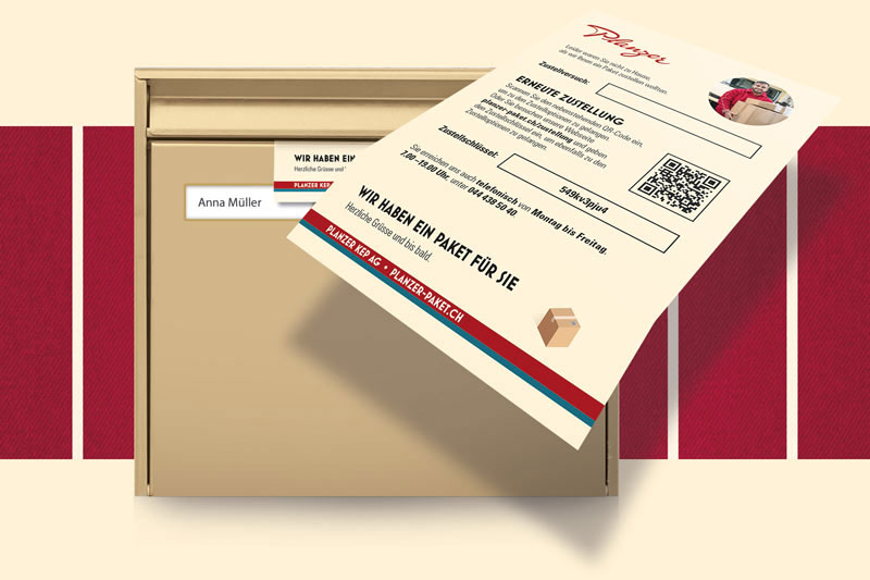 - Zustellkarte in den Briefkasten, falls Ihr Empfänger bei der Erstzustellung abwesend ist